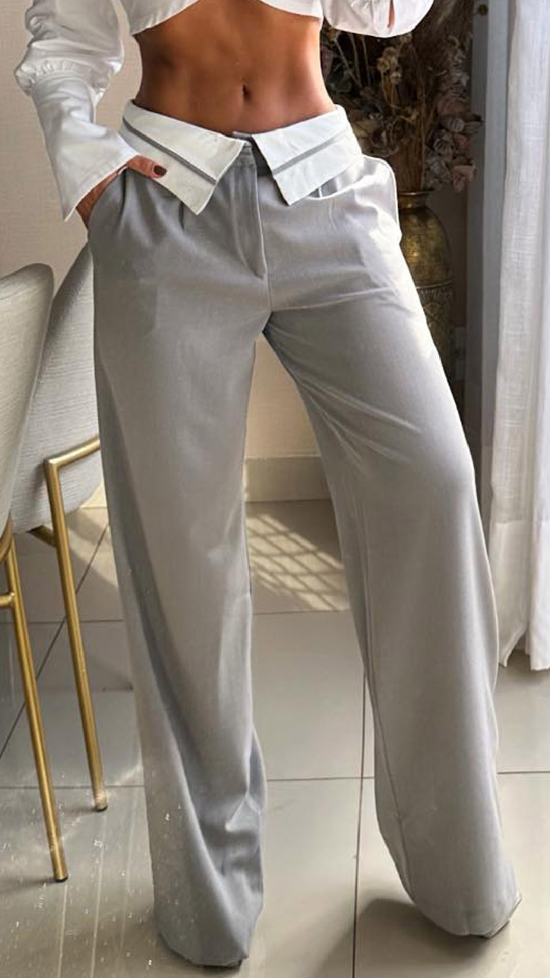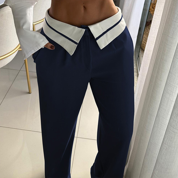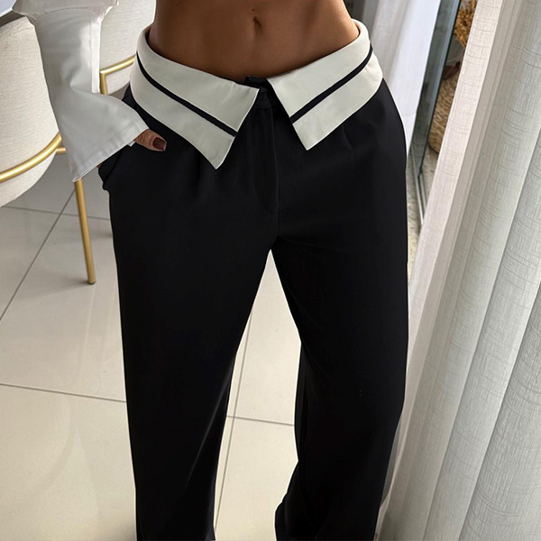 Crafted with high-quality materials, these pants offer a comfortable and flattering fit. The contrast color splicing along the waist adds a unique and eye-catching element, creating visual interest and making a bold statement. Wanna have one?