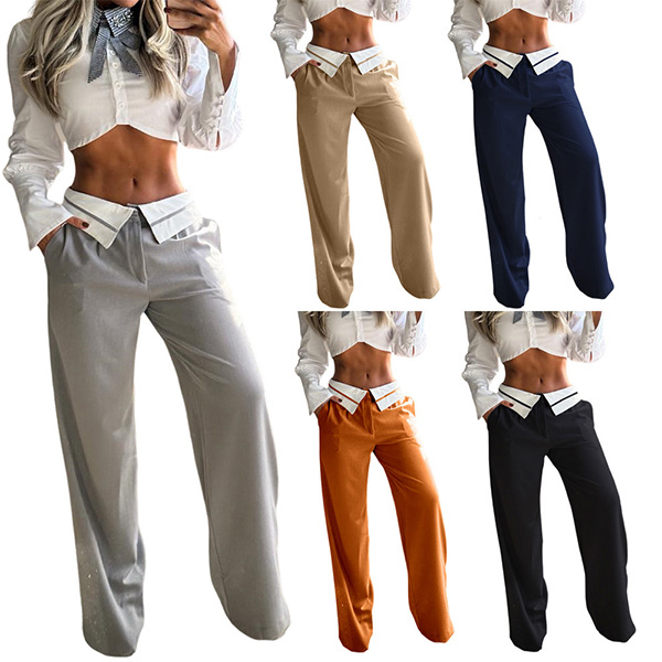Street Fashion Contrast Color Spliced High-waist Straight-cut Pants