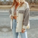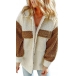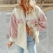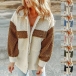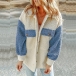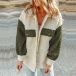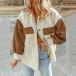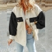 Street Fashion Contrast Color Stand Collar Long Sleeve Plush Jacket for Women
