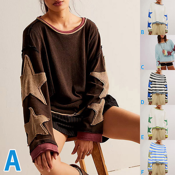 Street Fashion Contrast Color Star Pattern Long Sleeve Shirt