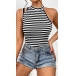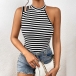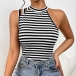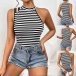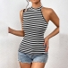 Street Fashion Contrast Color Stripe Printed Asymmetrical Shoulder Sleeveless Shirt