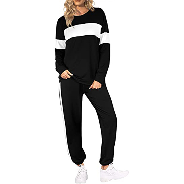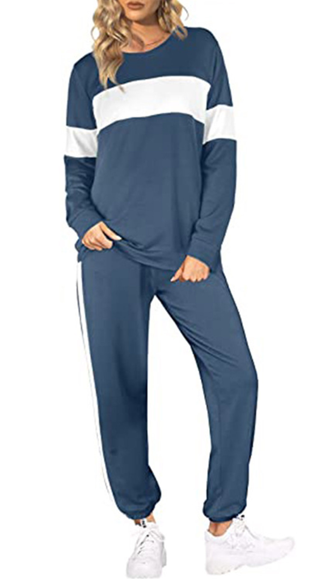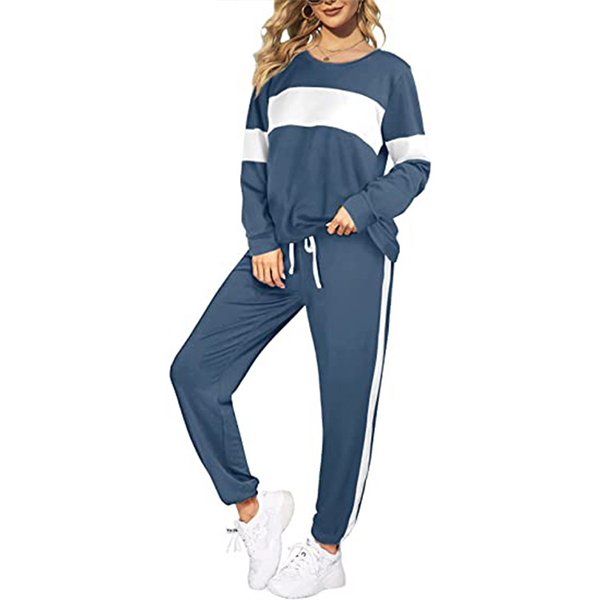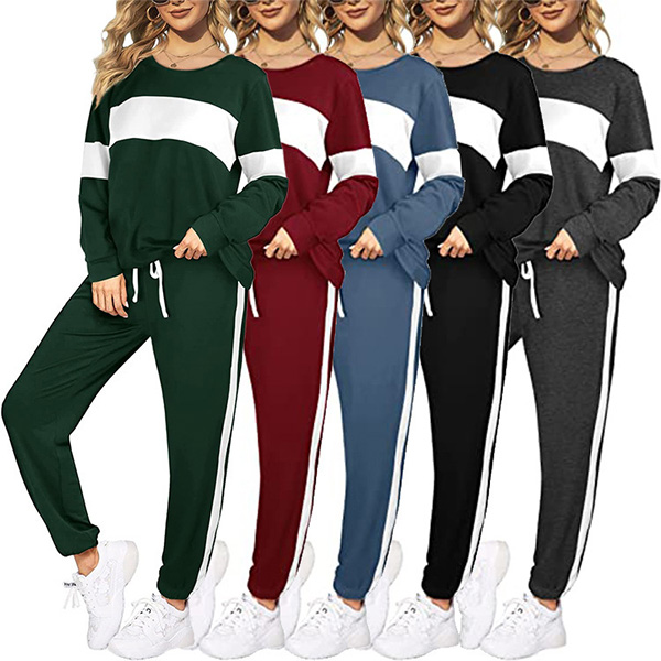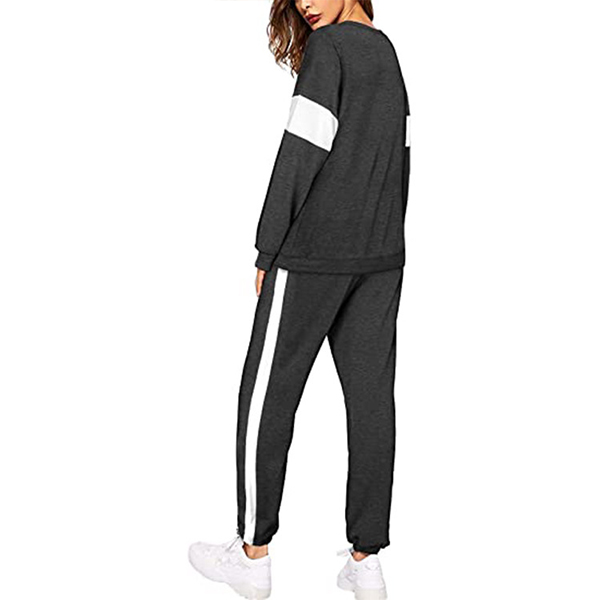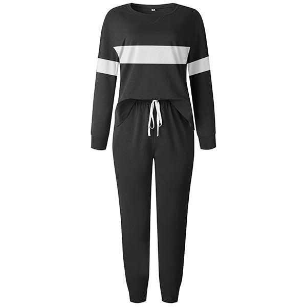 Street Fashion Contrast Color Stripe Printed Two-piece Set Consist of Sweatshirt and Drawstring Sweatpants