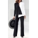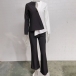 Street Fashion Contrast Color Two-piece Set Consist of Horn Buckle Shirt and Wide-leg Pants