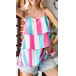 Street Fashion Contrast Color Verticial Striped Printed Tiered Cami Top