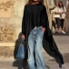 Stay ahead of the fashion with this Shirt. This trendy shirt features a modern crew neckline and stylish batwing sleeves that add a touch of urban chic to your look. The irregular hemline creates a unique and edgy silhouette, perfect for making a fashion statement. Pair it with jeans and sneakers for a casual street style vibe~
