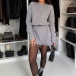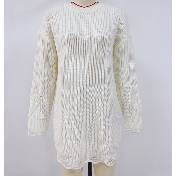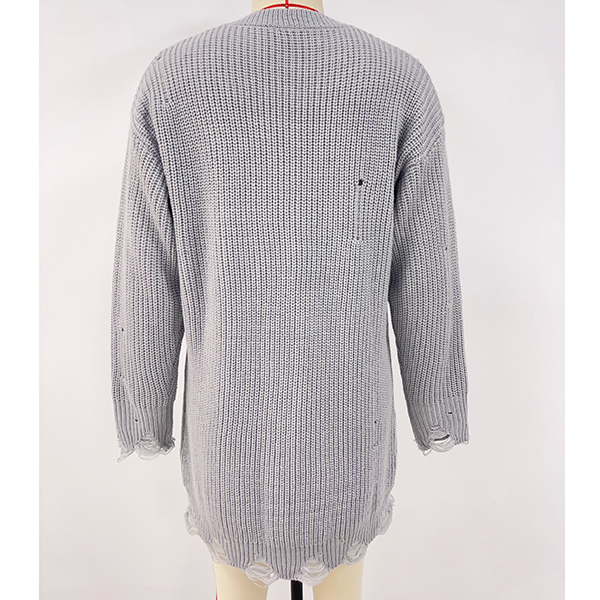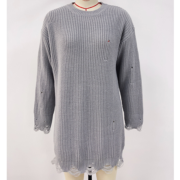 Street Fashion Crew Neck Long Sleeve Frayed Hemline Knitted Sweater