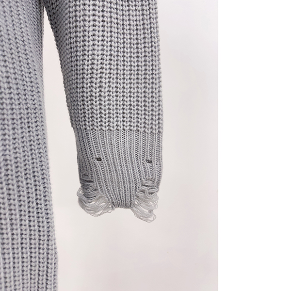 Look at this knitted sweater~ The frayed hemline introduces raw edge detailing and intentional distressed character that captures street fashion sensibility through deliberate imperfection, creating dynamic contrast between the sweater's cozy knitted construction and its rebellious finishing touches. Perfect for casual urban styling, layered looks, creative outings, or anytime you want comfortable sweaters with unconventional character and street-ready attitude.