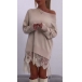 Street Fashion Crew Neck Long Sleeve Lace Spliced Hemline Shirt Dress