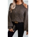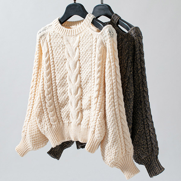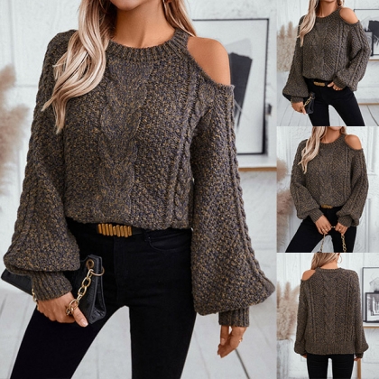 Make a style statement with this Knitted Sweater. This trendy sweater features a crew neck and open-shoulder design for a modern and edgy look. The cable pattern knit adds texture and visual interest to the piece, making it a chic and stylish addition to your wardrobe. Perfect for a casual day out or a night on the town, this sweater is versatile and on-trend. Pair it with jeans and boots for a cozy and stylish ensemble.