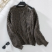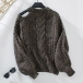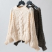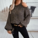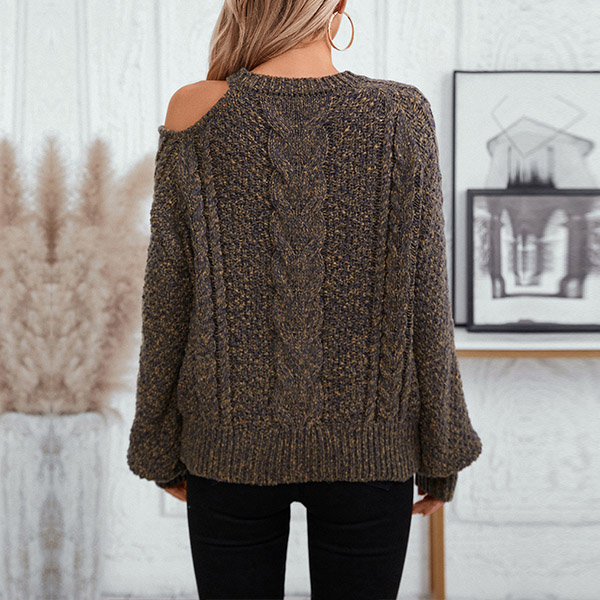 Street Fashion Crew Neck Open-shoulder Long Sleeve Cable Pattern Knitted Sweater