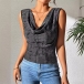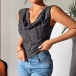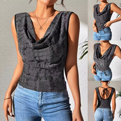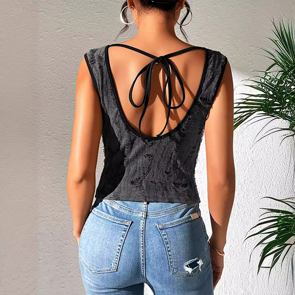Street Fashion Distressed Draped Neck Sleeveless Backless Shirt