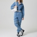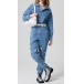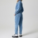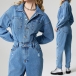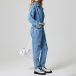 Street Fashion Distressed Polo Neck Long Sleeve Front Button Old-wash Denim Jumpsuit