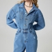 This jumpsuit features a distressed denim fabric, a polo neck, long sleeves, front button closure, and an old-wash finish for a trendy and urban look. Crafted from high-quality denim material with a comfortable feel, it is both stylish and practical. Pair it with sneakers for a casual streetwear look.