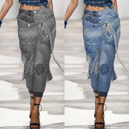 Looking for a unique and edgy pair of shorts to make a fashion statement? Check out our Street Fashion Distressed Wrap Denim Shorts!