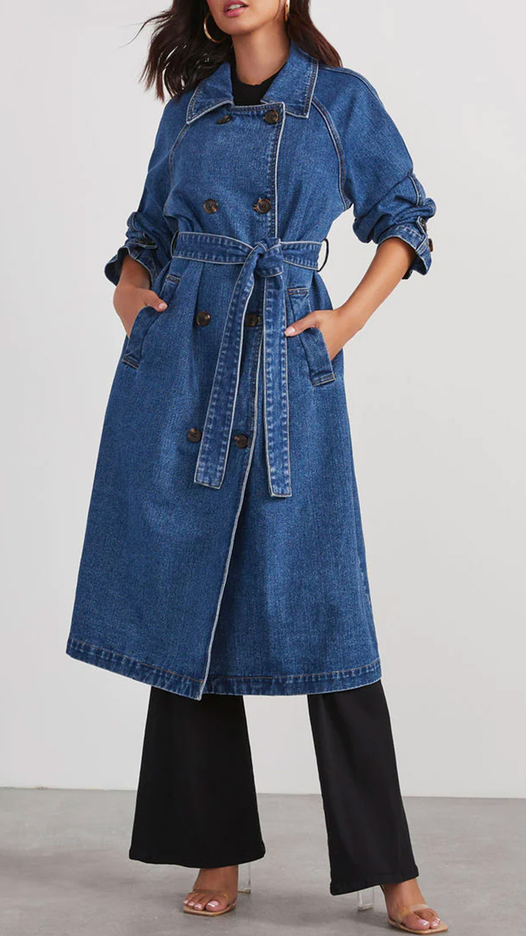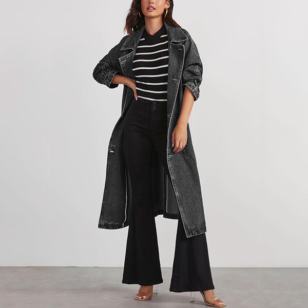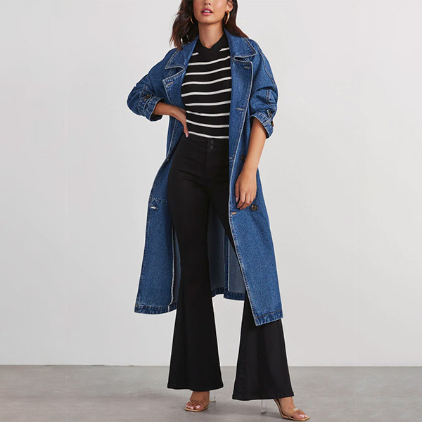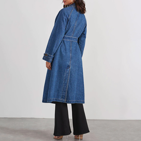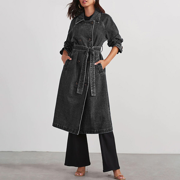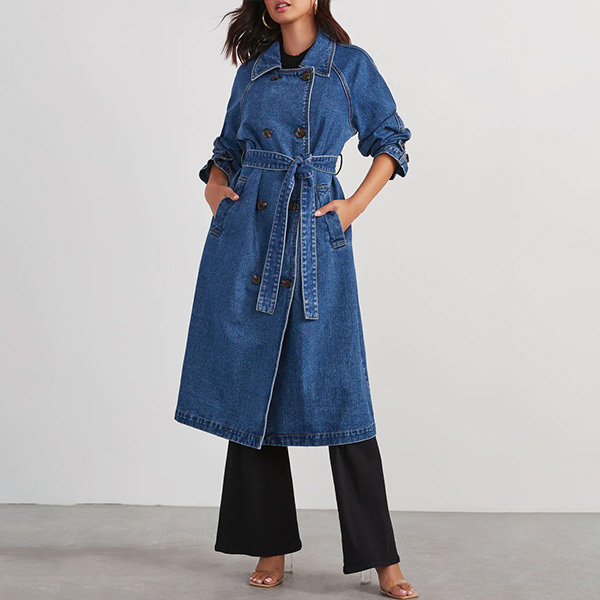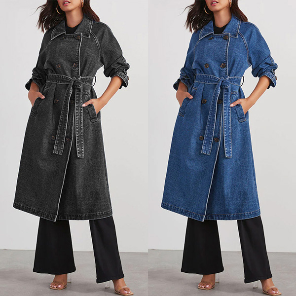 This piece is a fashionable twist to the classic denim jacket, featuring a double-breasted design and a self-tie waist that accentuates your silhouette. The jacket's robust denim fabric ensures long-lasting durability, while its unique design elements add a contemporary flair to your ensemble. Wanna have a try?