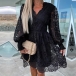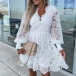 Street Fashion Floral Crochet V-neck Long Sleeve Lace Dress