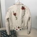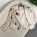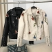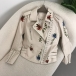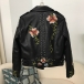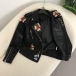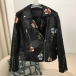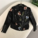 Street Fashion Floral Embroidery Rivet Stand Collar Long Sleeve Slant Zipper Artificial Leather PU Jacket