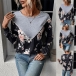 The shirt features a vibrant and bold floral print, adding a touch of femininity and charm. The floral printed with the front gray accent design for a contrasting color effect which provides a striking visual effect and creates a dynamic and edgy vibe.