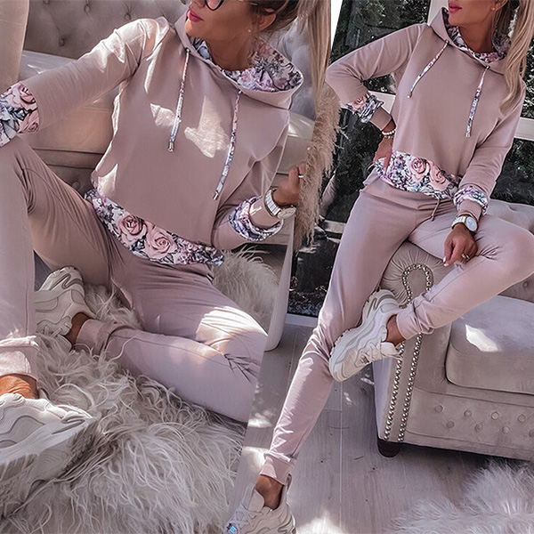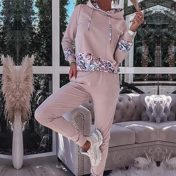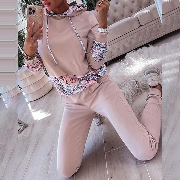 This hip set includes a hooded sweatshirt and matching sweatpants, each adorned with a floral print that adds a pop of color and a touch of nature to your wardrobe.