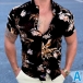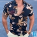 Street Fashion Floral Printed Stand Collar Short Sleeve Blouse for Men