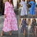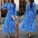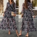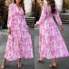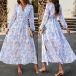 Street Fashion Floral Printed V-neck Long Sleeve Midi Dress