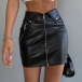 Street Fashion Fold Zipper Artificial Leather PU Skirt