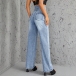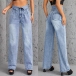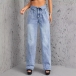 These stylish and versatile denim pants are the perfect addition to any street-chic wardrobe. With a foldable high-rise waistline and a straight-leg silhouette, these pants offer a flattering and contemporary look that can be dressed up or down for various occasions.