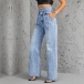 Street Fashion Foldable High-rise Straight-cut Denim Pants