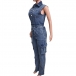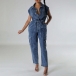 This street fashion jumpsuit features a front button closure, stand collar, sleeveless design, side patch pockets, and a self-tie waist detail, all crafted from old-washed denim for a trendy and edgy look. Whether you're exploring the city or hanging out with friends, this jumpsuit is a fashion-forward and versatile choice.