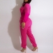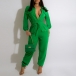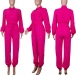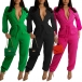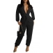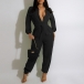 Street Fashion Front Button V-neck Elastic Waist Patch Pockets Long Sleeve Jumpsuit