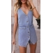 Look at this denim romper. The mock-two-piece design gives the illusion of layering, adding depth and interest to the romper. The front button design adds a touch of urban flair, while the V-neckline offers a modern and chic silhouette. While the irregular hemline creates a dynamic and fashion-forward look. Wanna have a try?