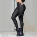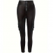How about this pants? The front zipper detail adds a touch of modernity and an industrial vibe, while the high-rise design offers a flattering silhouette that accentuates your curves. The side patch pockets add functionality and a cool, utilitarian feel to the pants. Made from artificial leather PU material, these skinny pants provide a sleek and edgy look that is perfect for making a statement. Pair these pants with a graphic tee or a crop top for a street-style inspired outfit.