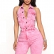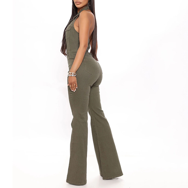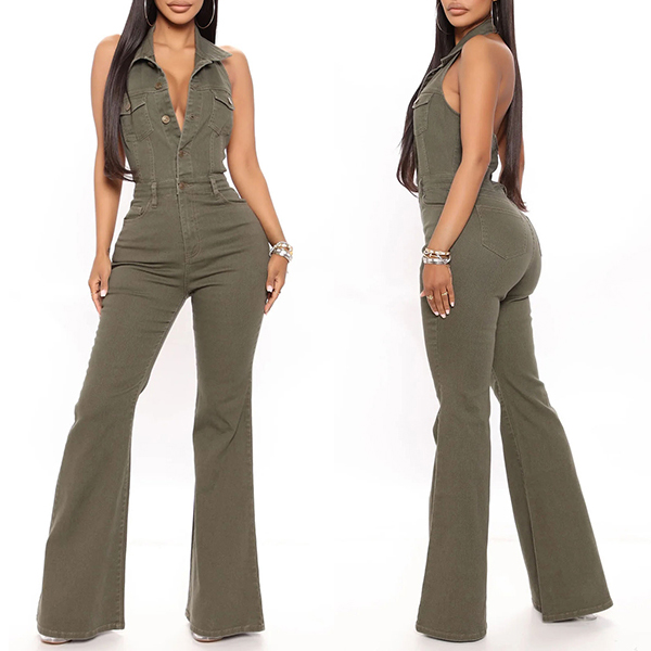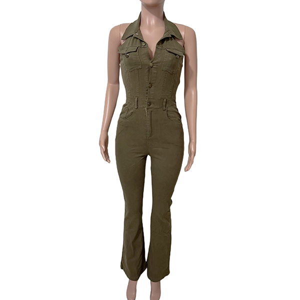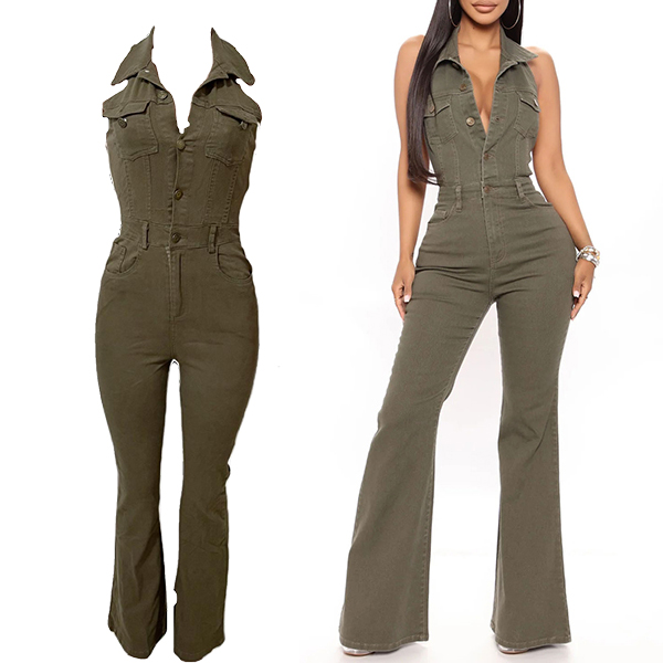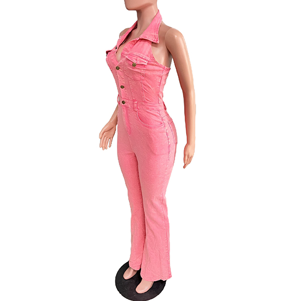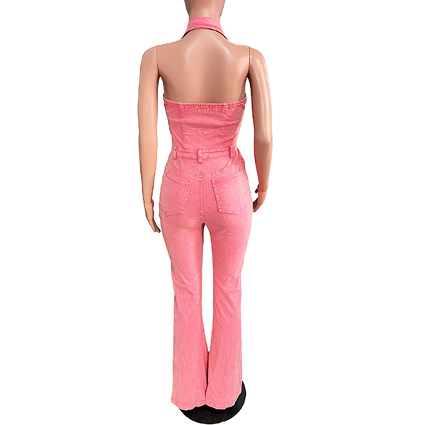 Make a bold statement with this street fashion old-washed denim jumpsuit. The halter neck design adds a trendy and edgy touch, perfect for a fashion-forward look. The front button detail enhances the style of the jumpsuit, while the backless design adds a touch of allure and sophistication. The straight-cut silhouette offers a modern and chic vibe, creating a sleek and stylish outfit. Wanna have a try?