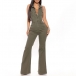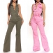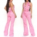 Street Fashion Halter Neck Front Button Backless Straight-cut Old-washed Denim Jumpsuit