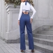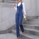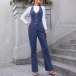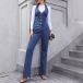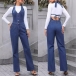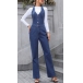 Step out in style with this street fashion denim jumpsuit. The halterneck design adds a trendy and modern touch to the jumpsuit, while the V-neckline offers a flattering and feminine look. The backless design adds a hint of allure and sophistication, creating a chic and fashion-forward silhouette. The straight-cut leg gives a sleek and streamlined appearance, making this jumpsuit a versatile and stylish option for various occasions. Is it your style?