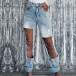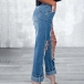 These jeans are a bold and trendy addition to your streetwear wardrobe. The heavy distressed detailing adds an edgy and worn-in look, giving them a rebellious aesthetic. The chain accent adds an extra element of style and attitude. The old-washed finish adds a vintage-inspired vibe, creating a unique and individualistic statement. The straight cut offers a timeless and versatile silhouette that can be paired with various tops and shoes. Wanna have a try?
