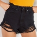Street Fashion Heavy Distressed Black Denim Shorts