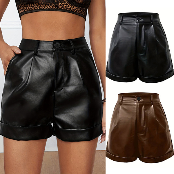 Crafted from artificial leather (PU), these shorts exude a sleek and edgy vibe. The high-rise waist creates a flattering and on-trend silhouette. Black and brown, which one do you like?