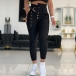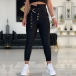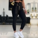 Crafted from a lightweight and stretchy fabric, these pants offer a comfortable fit and a flattering silhouette. The high-rise irregular waist with button closure for a stylish look. Wanna have one?