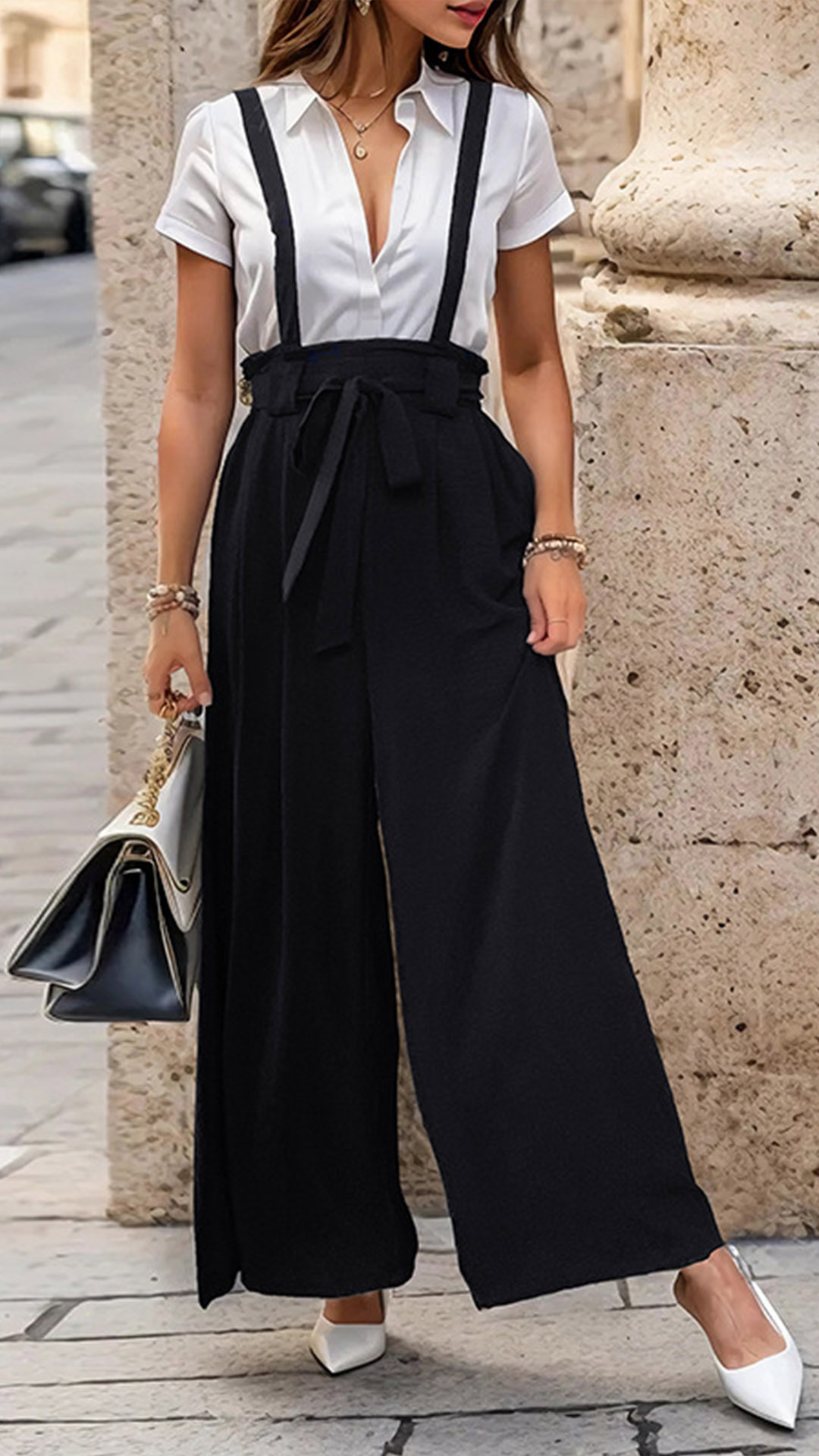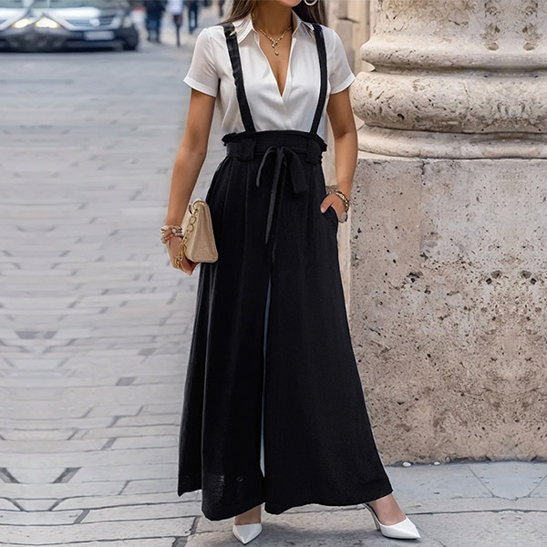Street Fashion High-rise Bowknot Wide-leg Suspender Pants