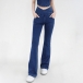 Street Fashion High-rise Butt-lifting Wide-leg Elastic Denim Sport Pants for Workout