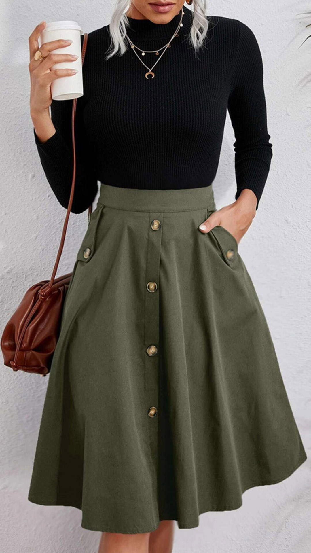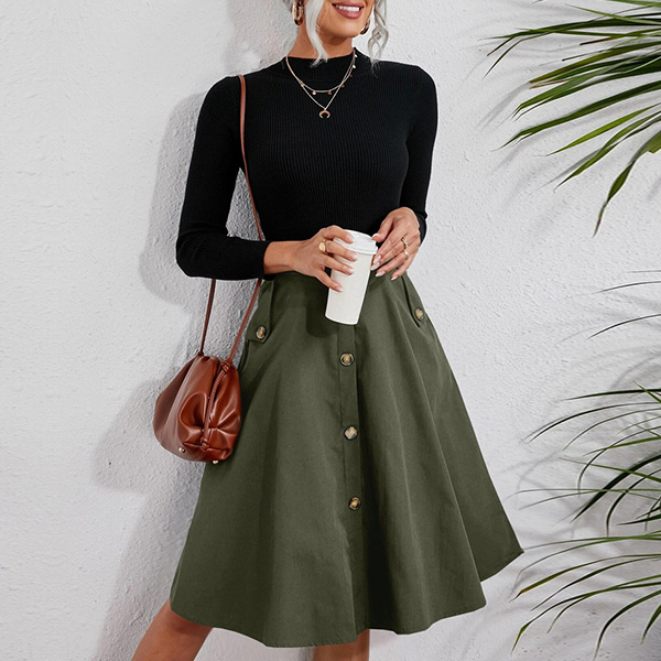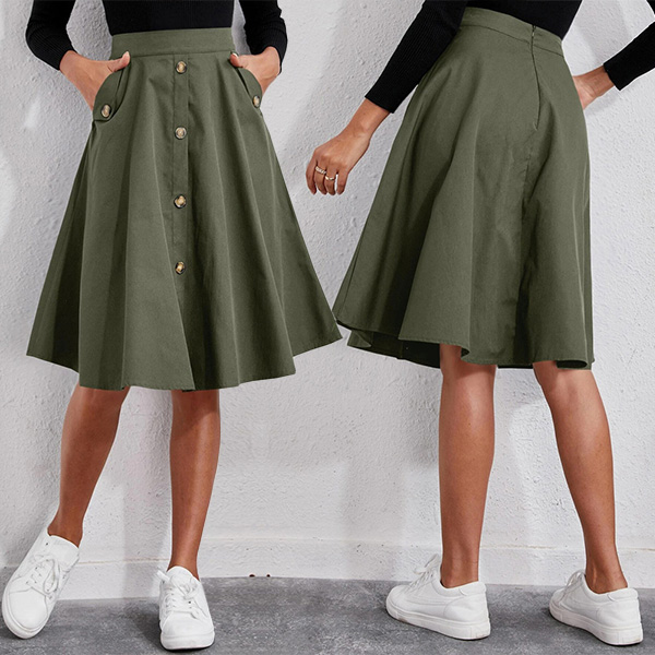 I like this skirt! The button detailing adds a trendy and stylish touch, giving the skirt a unique and eye-catching look. Whether you’re pairing it with a graphic tee and sneakers for a casual look or dressing it up with a blouse and heels for a night out, it is the perfect choice to showcase your fashion-forward taste and elevate your streetwear style.
