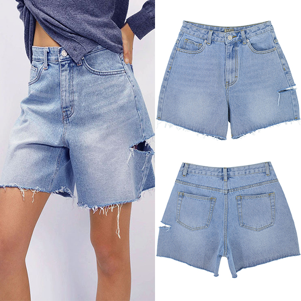Street Fashion High-rise Distressed Loose Bermuda Shorts