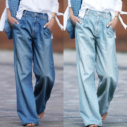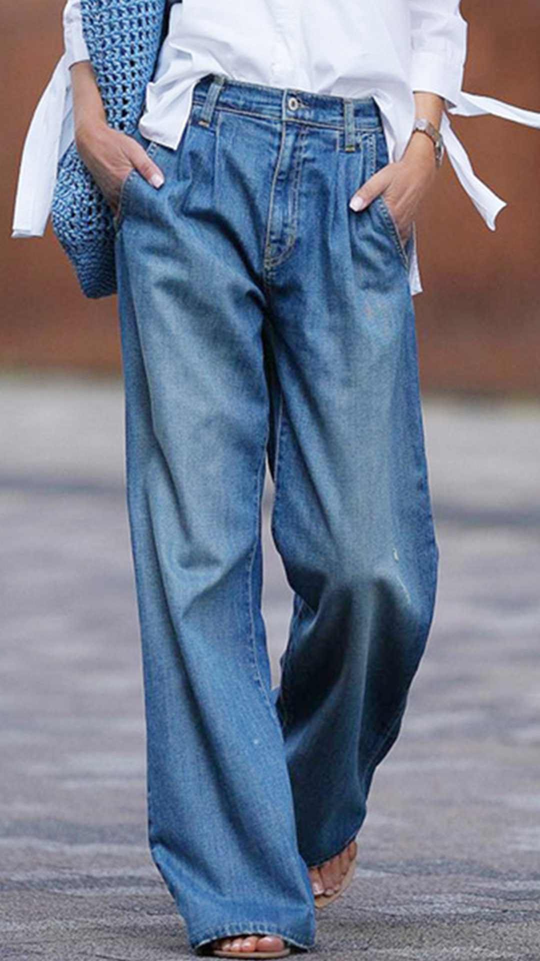 Street Fashion High-rise Loose Straight-cut Old-washed Denim Jeans