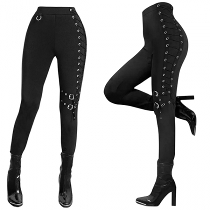 Elevate your street style with this Skinny Pants. These on-trend pants feature a flattering high-rise waist and unique side lace-up detailing that adds an edgy flair. Crafted from stretchy fabric for ultimate comfort, they're ideal for both casual outings and nights out.Wanna have a try?