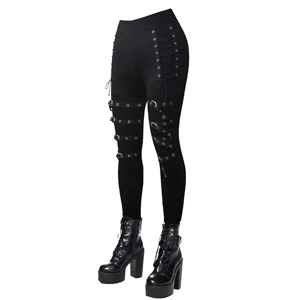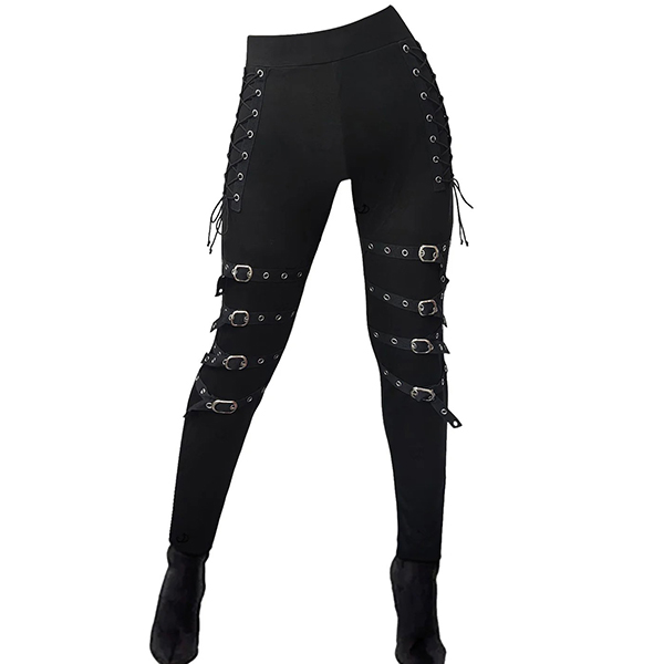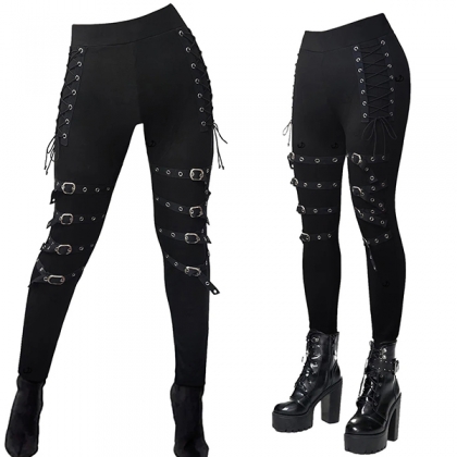 These edgy pants feature a high-rise waist that flatters your figure, combined with unique side lace-up and buckle detailing for a bold statement. The skinny fit hugs your curves perfectly, ensuring a sleek silhouette. Ideal for day or night!