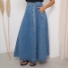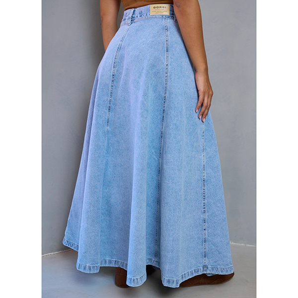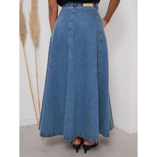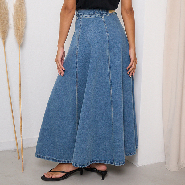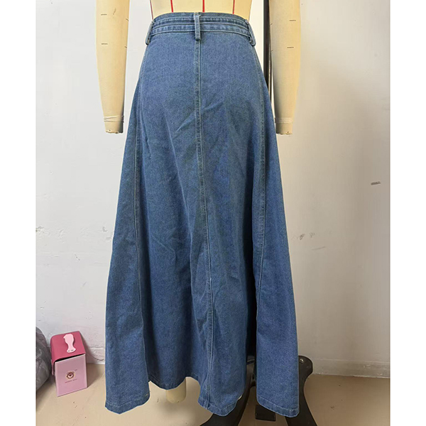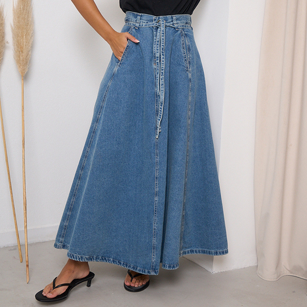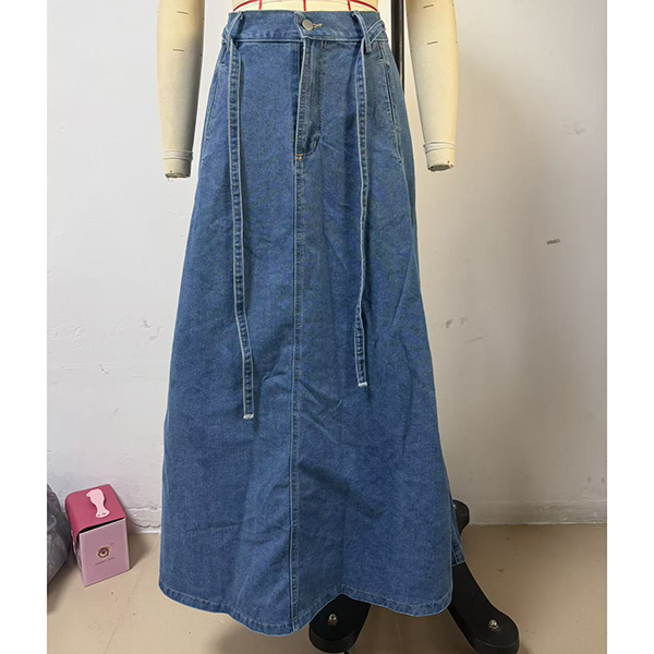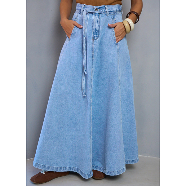 This maxi skirt features street fashion styling with flattering high-rise construction and authentic old-washed denim design for modern urban sophistication. The side pockets provide functional elegance with practical detailing whilst the self-tie feature offers adjustable styling and personalized fit. Perfect for street fashion occasions, urban styling, or contemporary casual coordination.