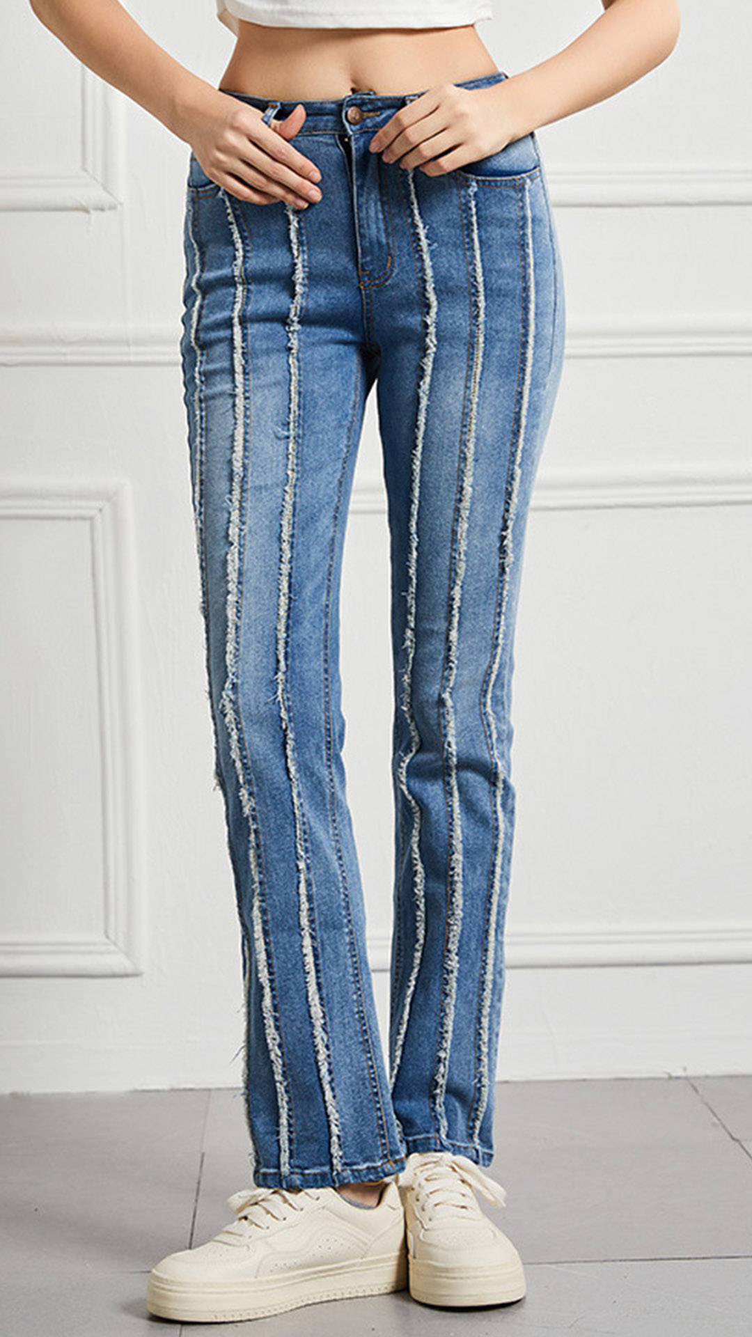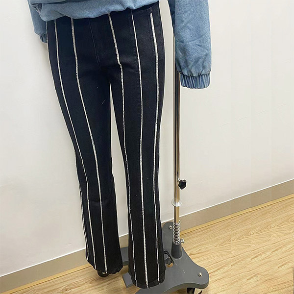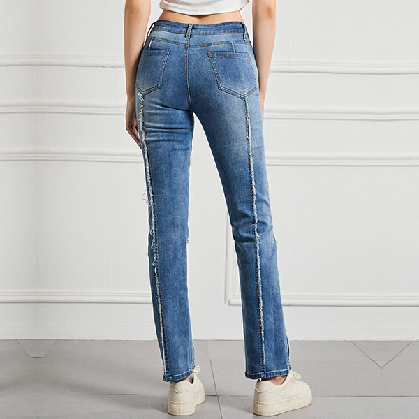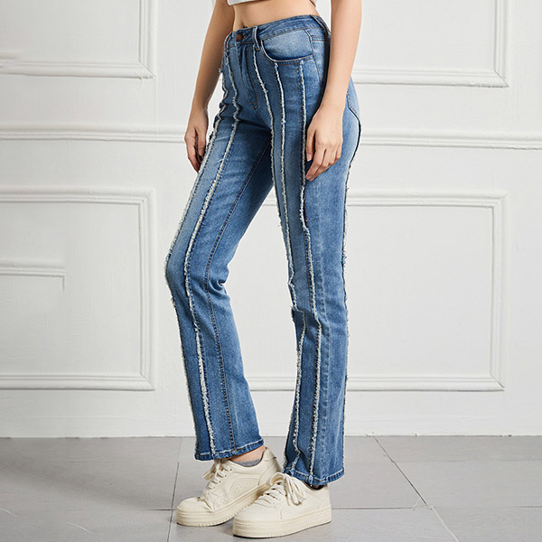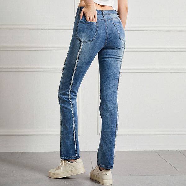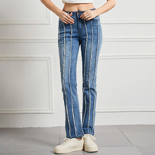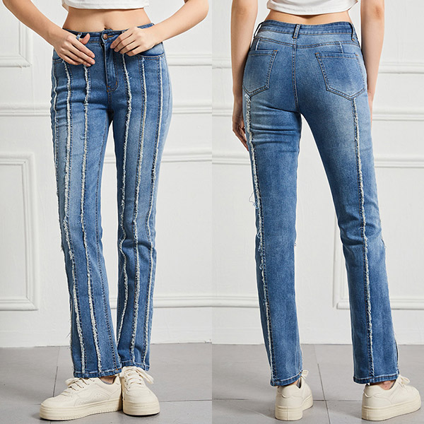 Street Fashion High-rise Vertical Frayed Spliced Straight-cut Denim Jeans