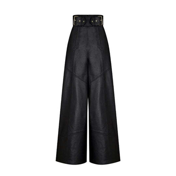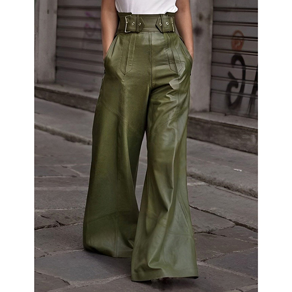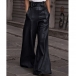 These statement pants feature edgy artificial leather construction with contemporary wide-leg silhouette for bold street style. The high-rise waist creates flattering proportions whilst the PU material brings modern edge and urban sophistication. Pair with fitted tops and ankle boots for balanced proportions.