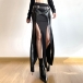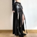 Make a bold statement with this edgy street fashion maxi skirt. The artificial leather material splcied design adds a touch of attitude and edge to the skirt, perfect for creating a unique and fashion-forward look.